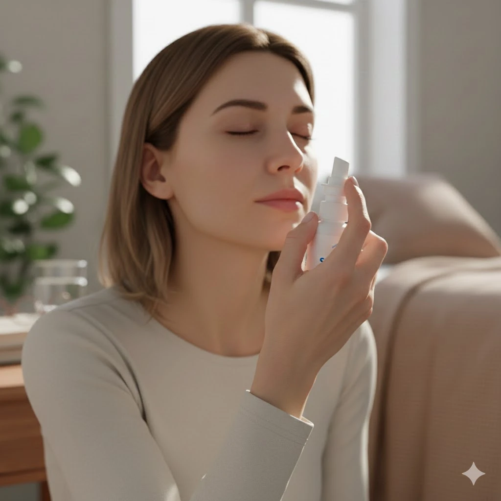 Gently clear nasal passages before applying the spray.